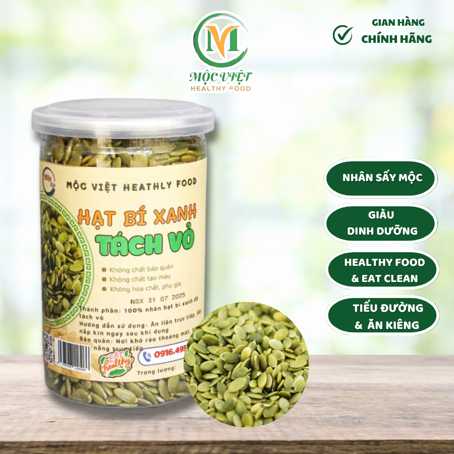 🥇 Đây là loại hạt bí Ấn Độ loại ngon số 1, được Mộc Việt tuyển chọn riêng, đóng hộp 500gr tiện lợi và đảm bảo chất lượng.